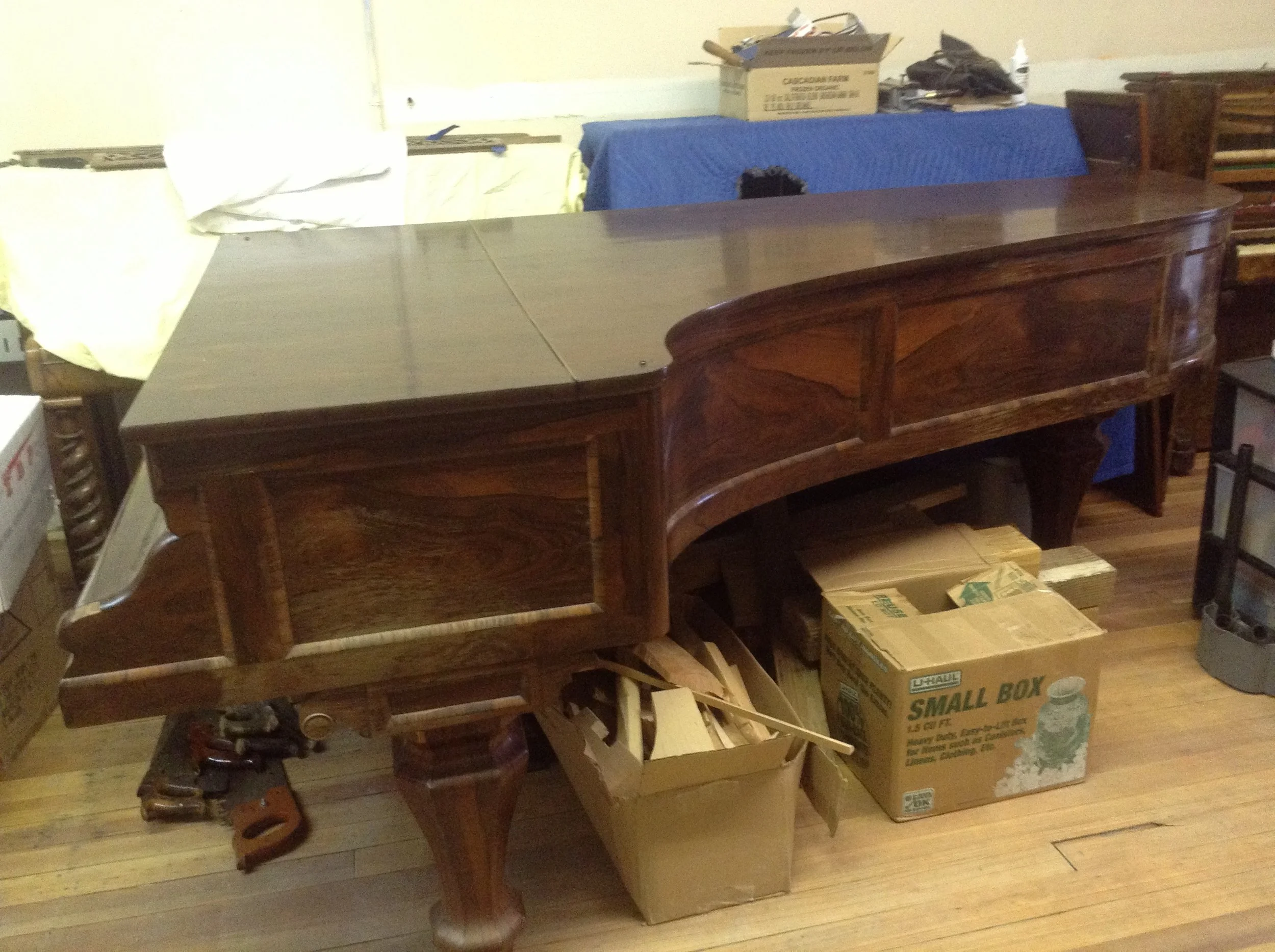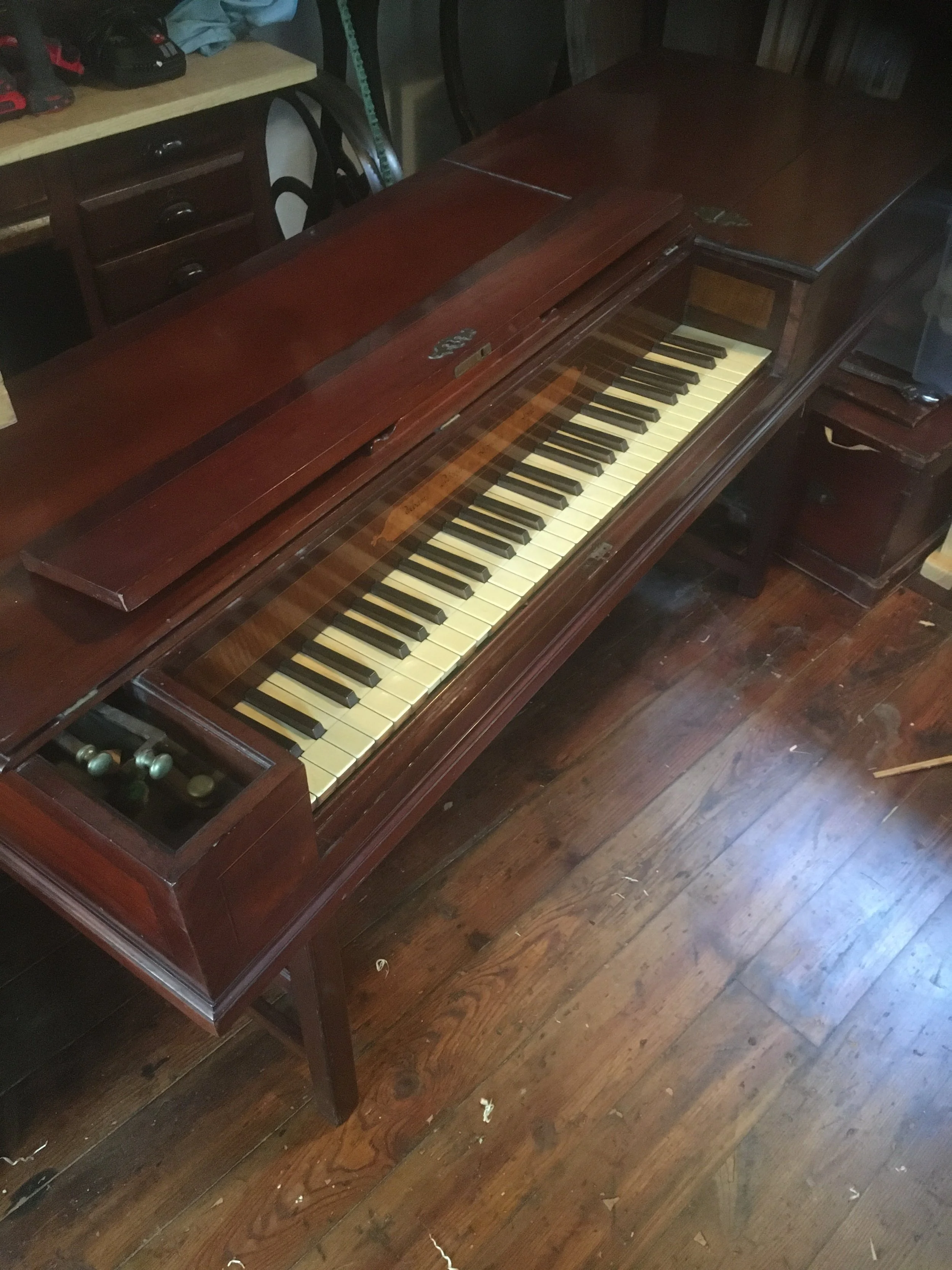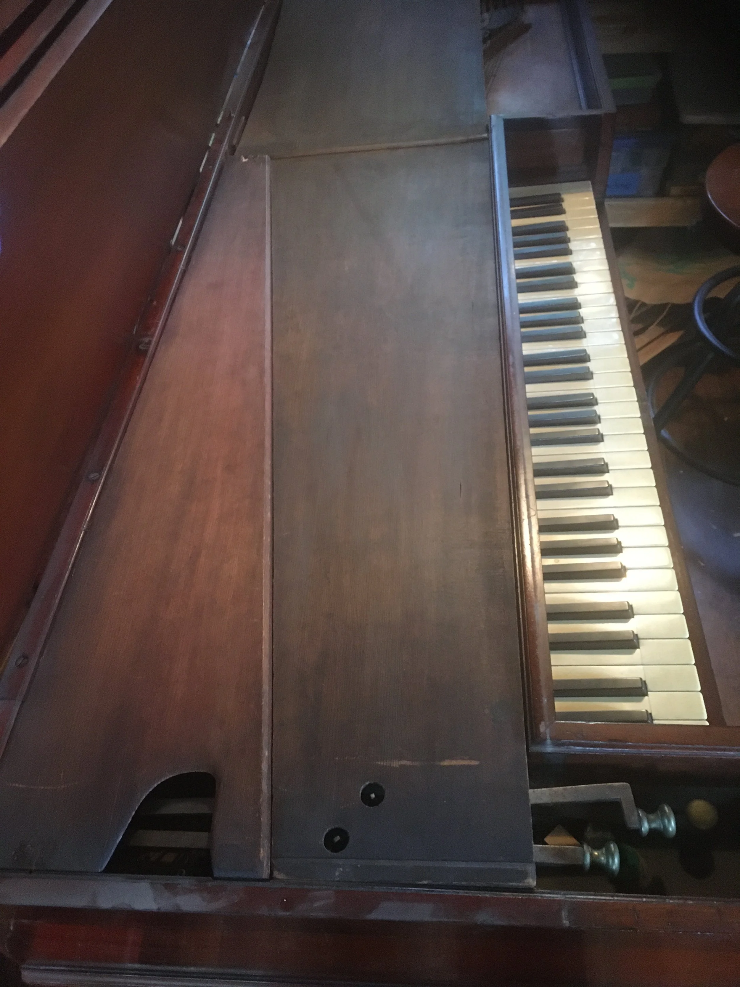 Over the years I have acquired a collection of antique pianos, some of them extremely rare. They date from as old as 1779 to the late 19th century. I have squares, square grands, uprights, and grands. Many of these instruments are undergoing restoration as time permits, and my intent is to make them available for concerts and recordings in the Pittsburgh and surrounding area. If you see a particular piano here that you would like to rent for a concert or recording session, please inquire.