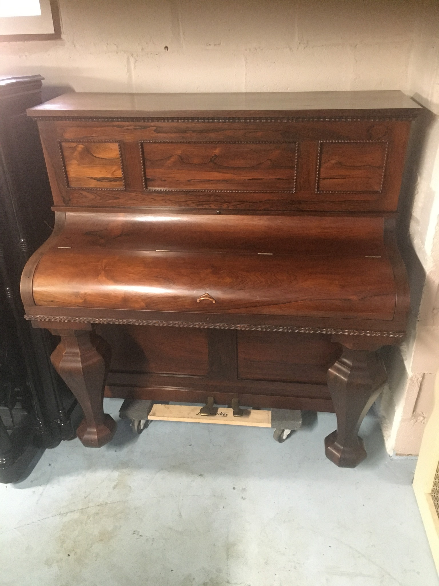 1840s? Stodart and Dunham Concert Grand made in New York. There are very few if any other American Concert Grands from this early with known whereabouts. This one has an Erard style action with under-dampers, straight-stringing, and a combination of felt and leather hammers. Recessed panel case in rosewood. This will be a real gem to hear and play. It is in almost completely original condition.